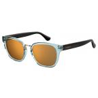 El modelo de gafas de sol para hombre y mujer HAVAIANAS GUAECA MVU (VP) tiene una montura cuadrada en color azure transparente y las varillas en negro. Los cristales son de color dorado. El tipo de lentes de las HAVAIANAS GUAECA MVU (VP) es espejado. El tamaño de calibre 52mm, un tamaño de puente 20mm y unas varillas con un tamaño de 145mm.